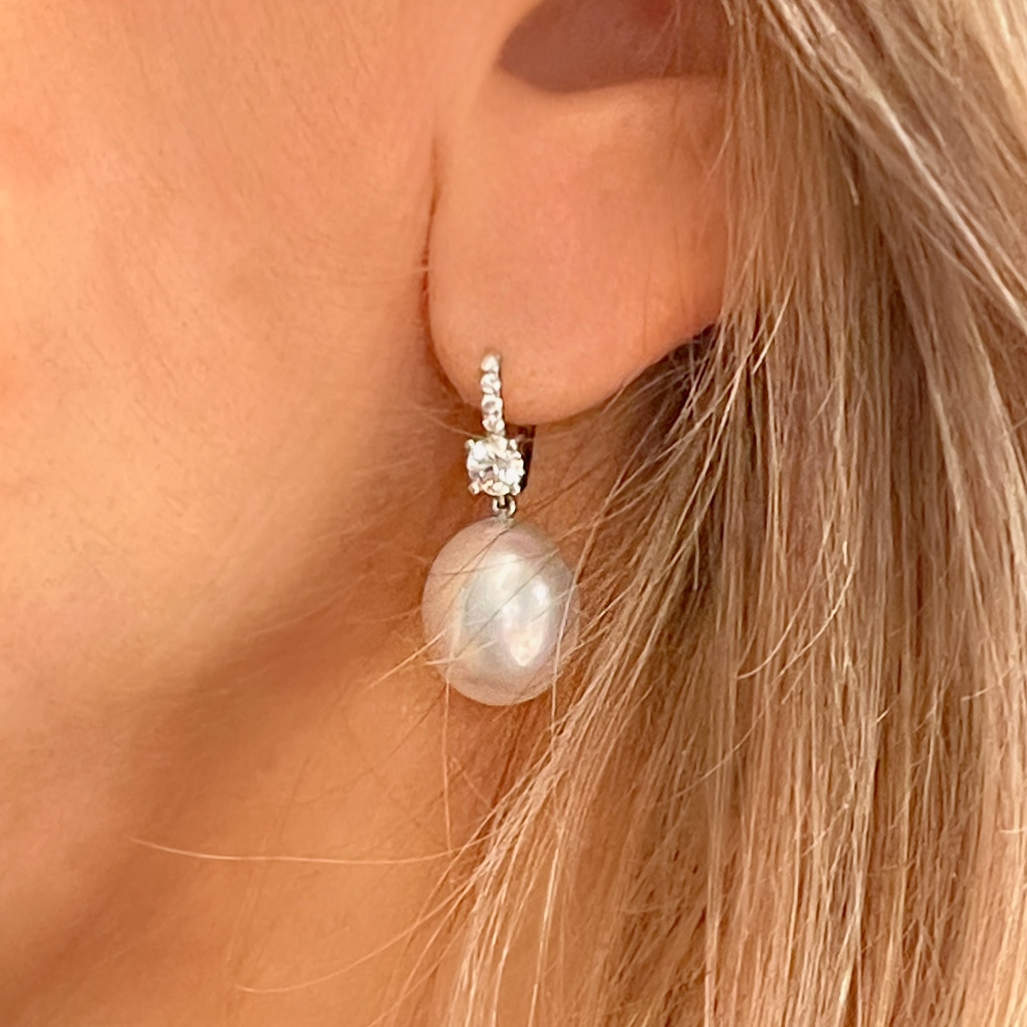 Round Diamond and South Sea Pearl Earrings
