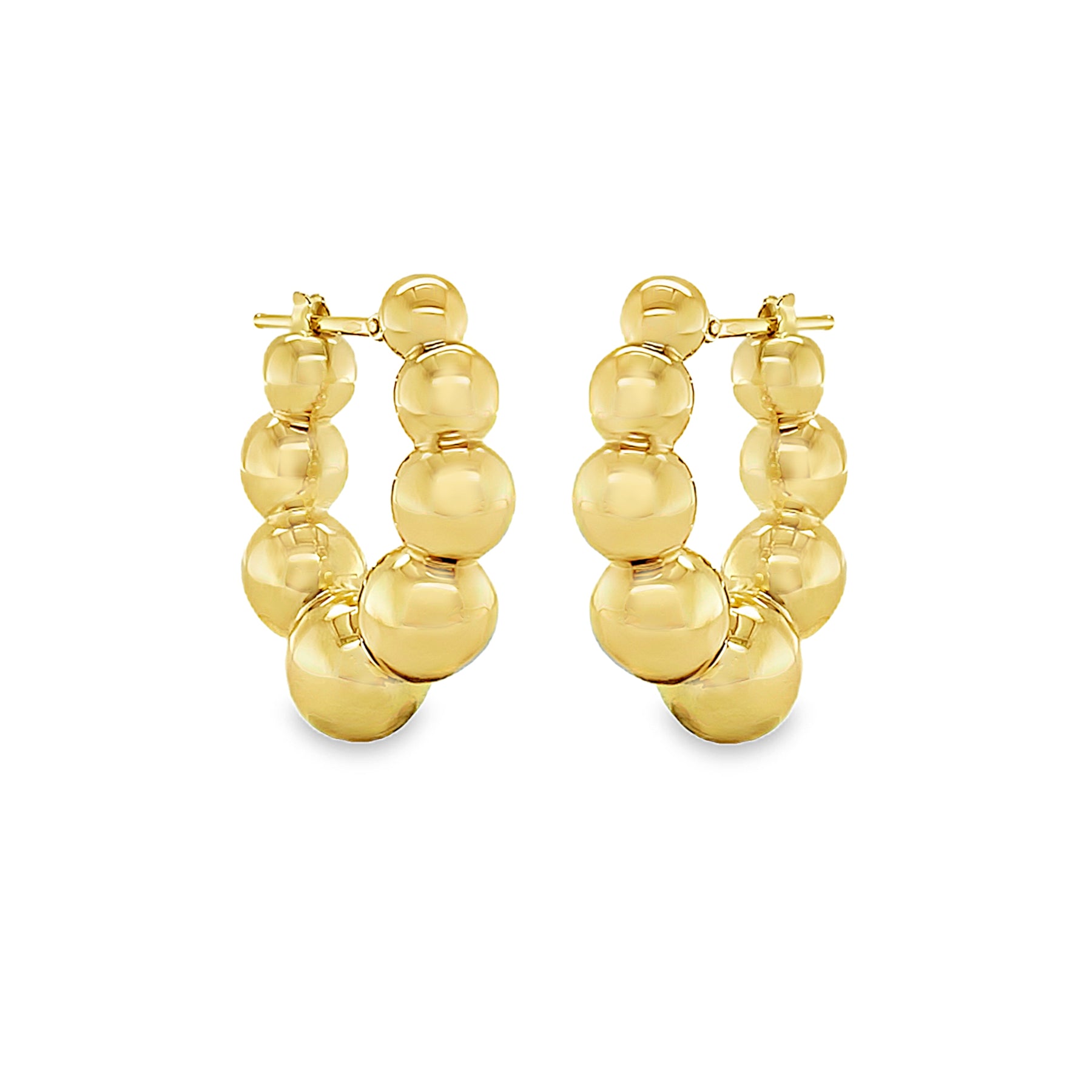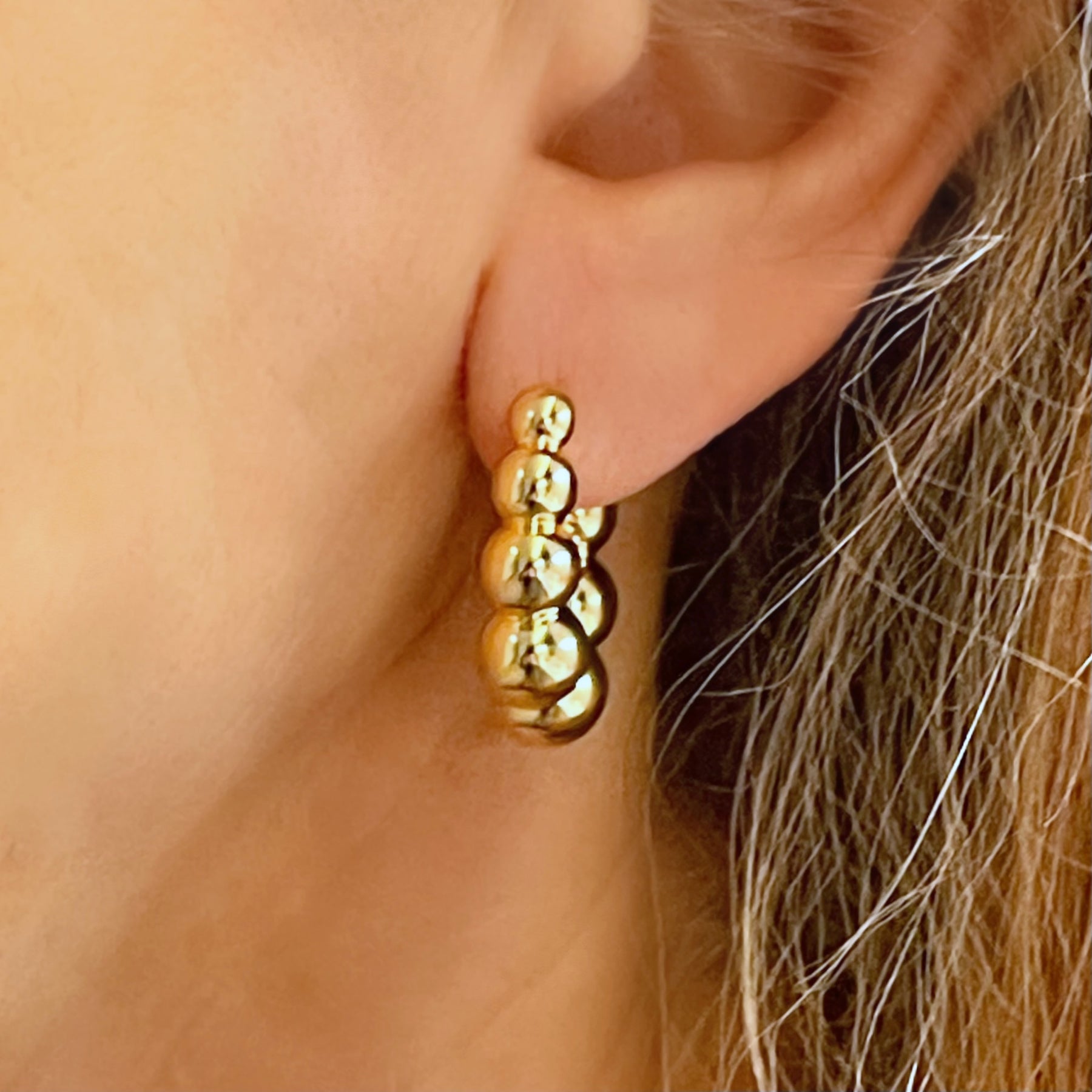 Fall in love with our 18k gold hoop earrings featuring a charming ball motif. Lightweight and easy to wear, they bring a playful bounce to your look without weighing you down.